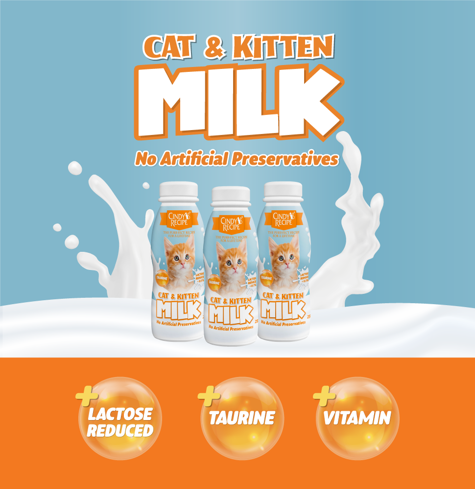 Lactose is the natural sugar that contains in the regular milk. Cats need lactase, an enzyme produced by the stomach, to break down the lactose so the body can absorb it. However, some cats are lactose intolerant in nature (due to lactase deficiency in their body). Cats that are lactose intolerant may experience acute intestinal distress – like gas, diarrheal or vomiting when they consume dairy products containing lactose. With this in mind, we added a natural enzyme into our milk to remove the lactose so that cats (and kittens) can consume it without experiencing any gastrointestinal problem.