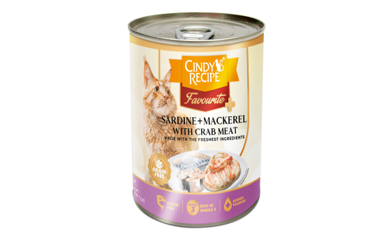 Sardine, Mackerel, Crab Meat, Water, Gelling Agent, Oil, Vitamins and Minerals, Guar Gum.