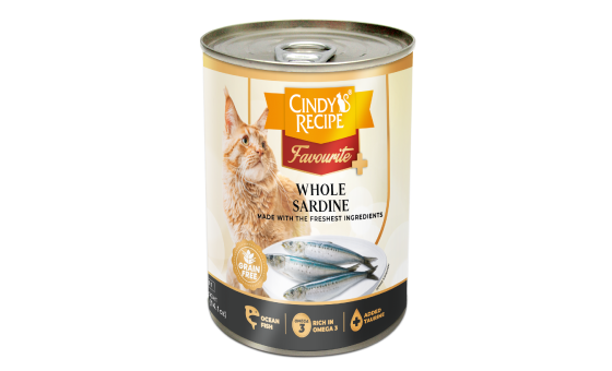 Sardine, Water, Gelling Agent, Oil, Vitamins and Minerals, Taurine.