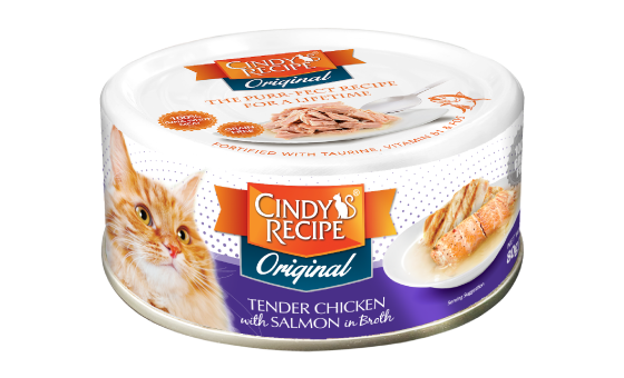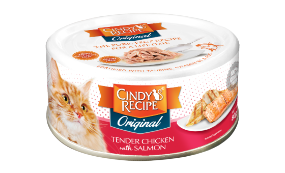 Chicken, Salmon, Modified Tapioca Starch, Carboxymethyl Cellulose, Vitamin B1, Vitamin E, Taurine, FOS (Fructooligosaccharides) and Water.