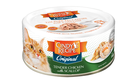 Fresh Chicken, Scallop, Jelly, Vitamin B1, Taurine, FOS (Fructooligosaccharides) and Water.