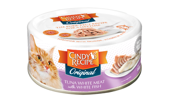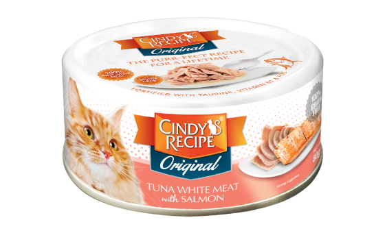 Tuna White Meat, Salmon, Jelly, Vitamin B1, Taurine, FOS (Fructooligosaccharides) and Water.